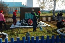 "Наше счастье в общем труде". Уборка территории обелиска Юнармейцами.