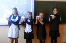 Членами РДШ проведена Республиканская акция "Территория мира". Они изготовили "белых журавликов" и "голубя мира", на которых написали предложения на тему "Что для меня наш мир?"