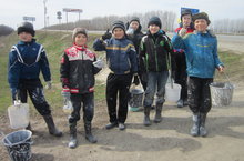 Sms-дети сегодня вышли на очистку оврага. Они призывали односельчан относиться бережнее к родным местам.