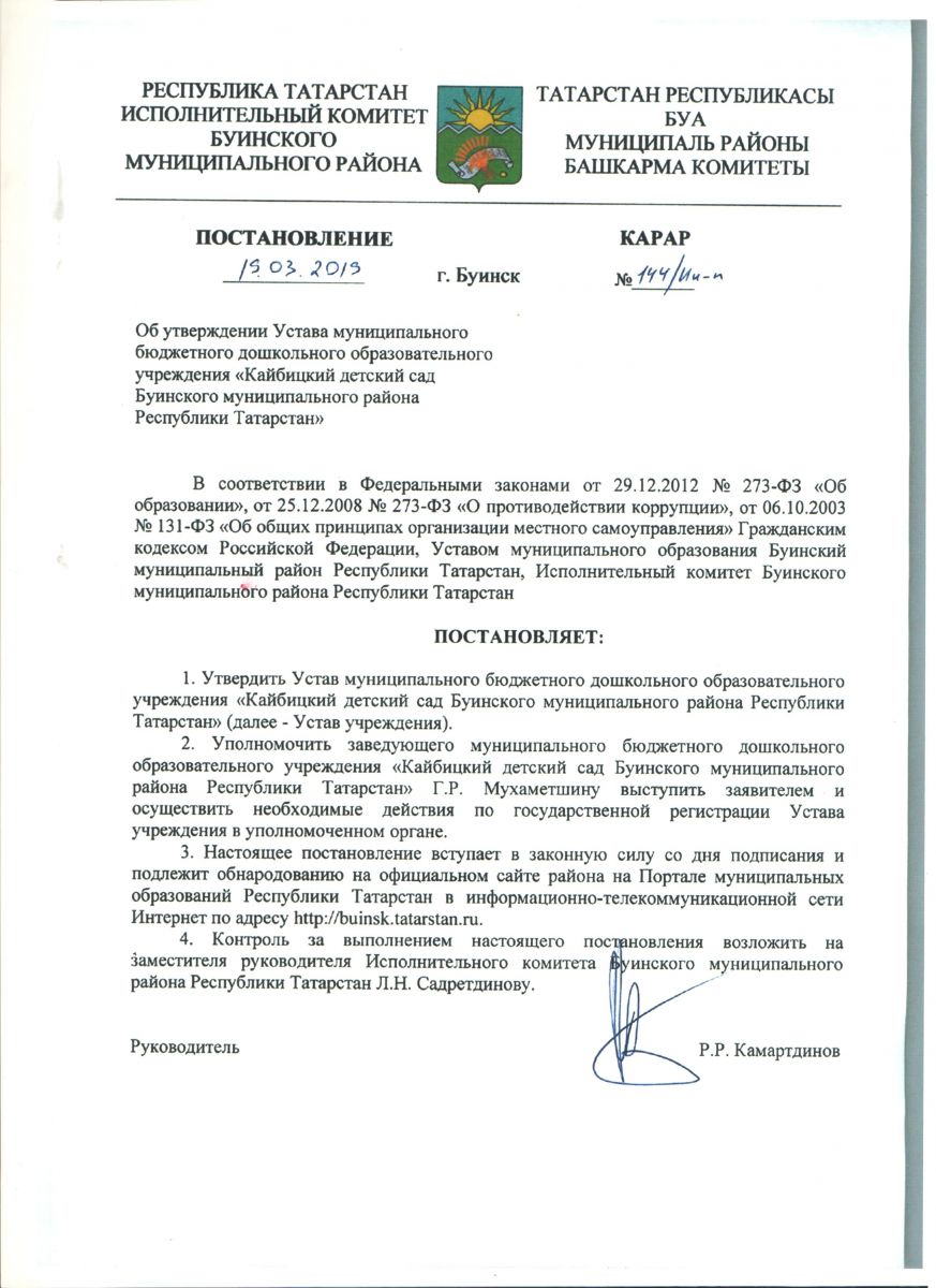 Постановление руководящих органов Буинского муниципального района