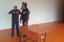 Бүген укучылар белән очрашуда янгын сүндерү участогыннан Садриев Рамил Габделхак улы булды. Ул укучыларны янгын сүндерүчеләрнең киемнәре белән таныштырды, янгын куркынычсызлык кагыйдәлре турында сөйләде, сорауларга җаваплар бирде.