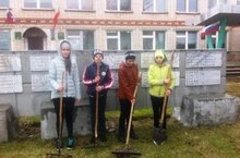 Отряд Юнармейцев в рамках Недели добра очистили территорию вокруг памятника, посвященного односельчанам не вернувшихся с войны во время ВОВ 24.04.2017