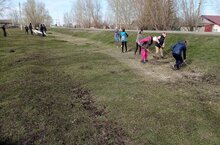 18 апреля провели в школе субботник. Все ученики и учителя участвовали в уборке территории.