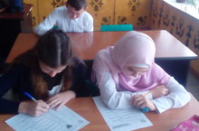 Бүген мәктәптә "Грамотность на кончике пера" конкурсы булып үтте. 4 мәктәптән җыелган 2-4 сыйныф укучылары диктант яздылар. Беренче урынны алучы 4 укучы мәктәп данын районда яклаячаклар. Менә алар үзләре дә укытучылары белән. 15.11.2017