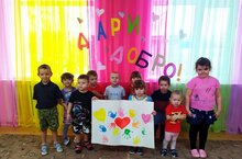 "Мы разные, но мы вместе" под таким девизом прошëл день в МБДОУ "Киятский детский сад".Выполняя коллективную работу, дети подарили любовь и доброту, передавая в своих ладошках и приняли участие в акции" Мир спасут доброта и любовь". -