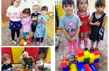 -закреплять знакомые названия деталей (кубик, кирпичик, пластина,) + знакомить с новыми;