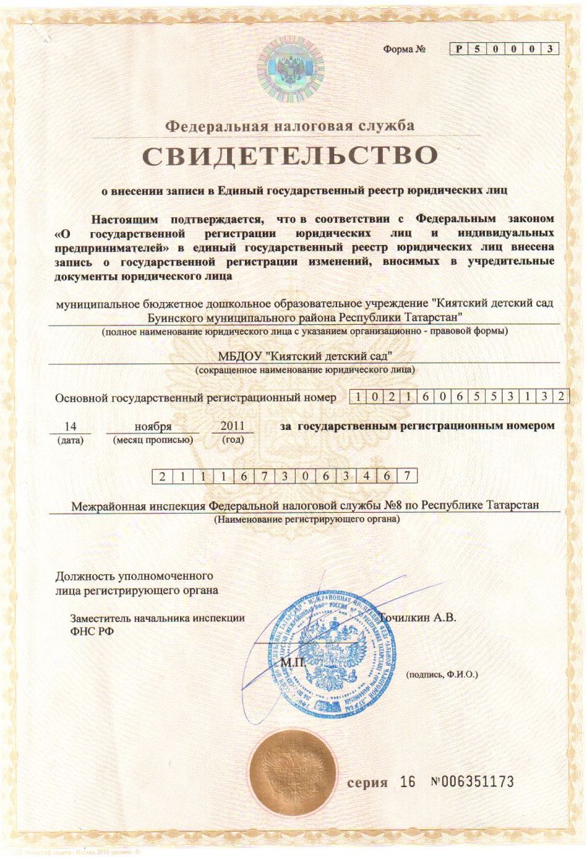 Cвидетельство о внесении записи в ЕГРЮЛ