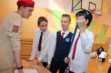 16 февраля в рамках месячника гражданско-патриотического воспитания в лицее-интернате прошли военно-спортивные игры "Разведчики" для 5-7 классов. Традиционно мероприятие началось с построения и исполнения гимнов. Дети с интересом участвуют в таких соревнованих, как разборка и сборка автомата, первая помощь, вязание узлов, историческая викторина, инсценировка военных песен, метание гранаты, викторина на знание символики страны и воинских званий. Лучшие команды будут награждены на смотре строя и песни.