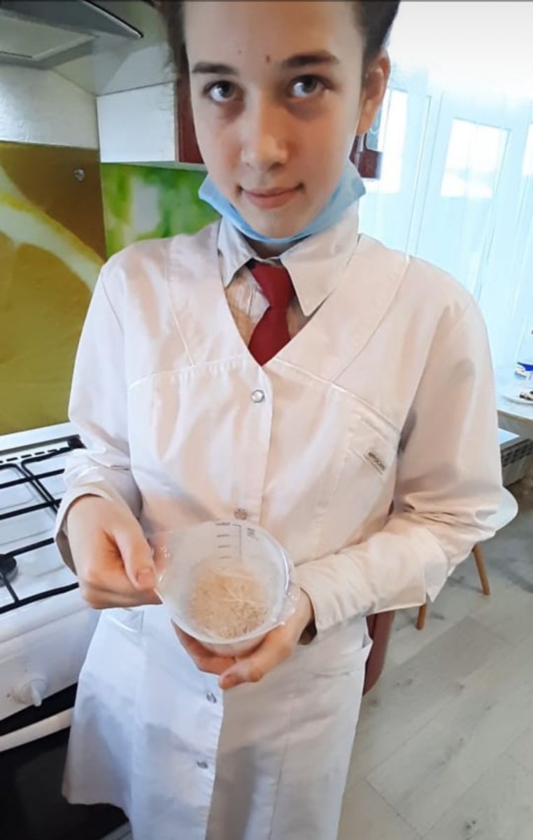 Ученица 8 б класса Усманова Рамиля принимает участие в акции "ДетивНауке", выполнив научный эксперимент "Горячий лед". Она самостоятельно приготовила расплав ацетата натрия,который моментально кристаллизуется в комнатной температуре.