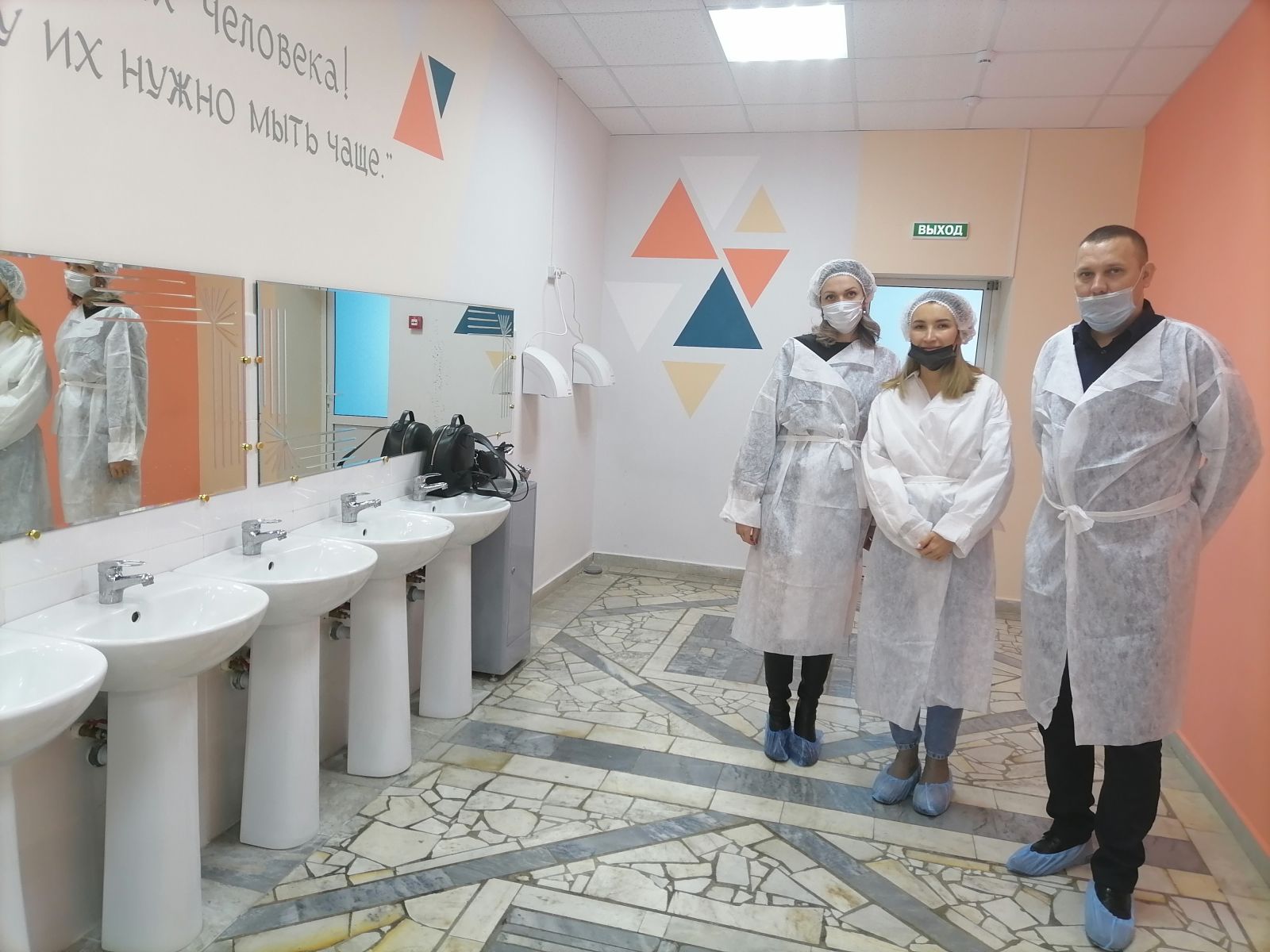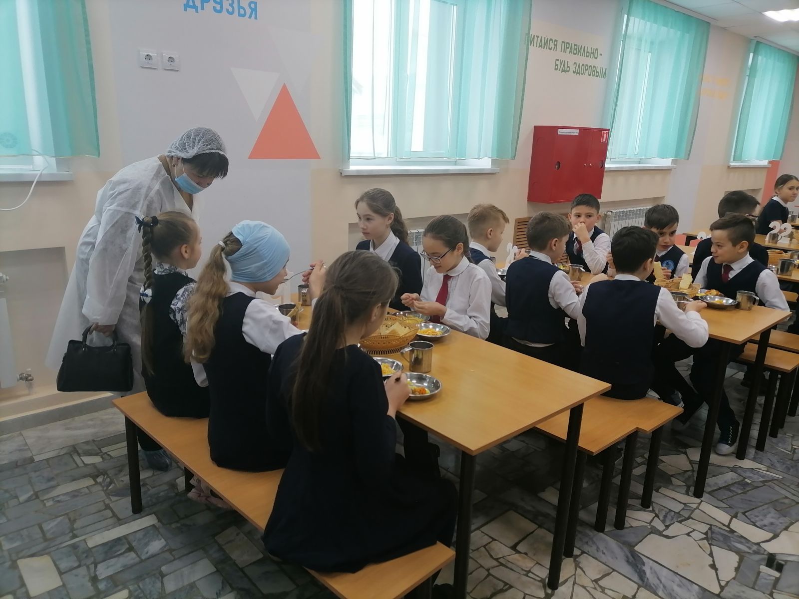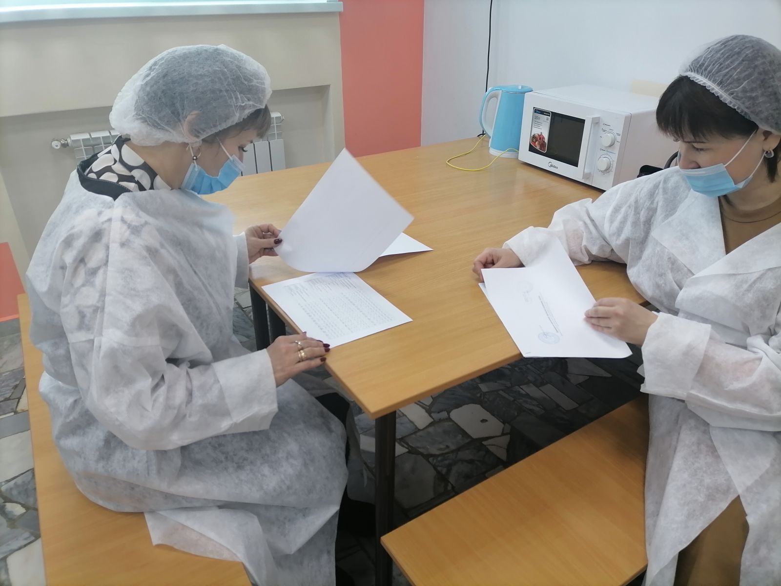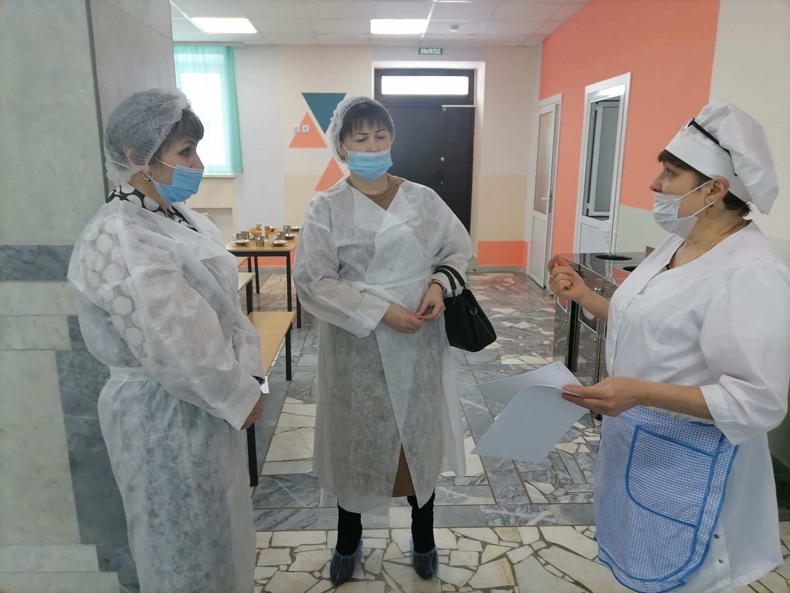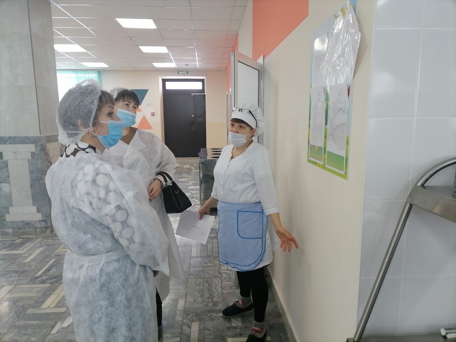 Фото членов родительского комитета при проверке столовой