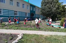 Седьмой день работы лагеря туда и отдыха. Ребята продолжают заниматься благоустройством территории школы, трудиться на пришкольном участке.