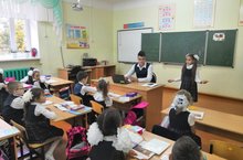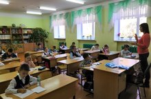 Учащиеся 4"В" класса (классный руководитель Тимина С.Ю.) на классном часе подготовили защиту своих проектных работ на тему"Достопримечательности города Буинска"
