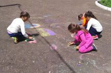 Веселые игра на асфальте "Крестики-нолики" среди воспитанников пришкольного лагеря