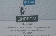 Фаткуллину Л.,ученицу 10 класса,завоевавшую диплом III степени в рамках республиканского проекта "IT-Jump"(рук.Мулеева А.Ю.)