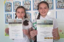Учениц 6"В" класса Бадардинову Л. и Гафурову А.,занявших III место в республиканской научно-практической конференции школьников"От школьного проекта к формированию интеллектуальной элиты Республики Татарстан"(секция"Математика.Информатика")