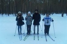 Учащиеся 9"Б" класса(кл.руководитель Халилова З.Х. на лыжной прогулке в зимнем лесу 11.01.2015