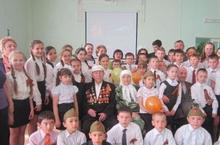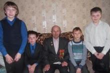 Учащиеся 6"Б" класса(кл.рук.Вильданова Г.Ф.) с ветераном Великой Отечественной войны Замалетдиновым Фаритом Низамовичем 07.05.2014