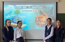 Бүген, 15 ноябрьдә, 9 нчы сыйныф укучылары белән балигъ булмаганнар арасында гаилә бәхетсезлеген профилактикалау буенча әйдәп баручы белгеч - инспектор А.А. Костюнина белән очрашты. Ул “Терроризм юк дип әйтәбез!” темасына профилактик әңгәмә үткәрде.