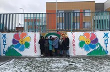 Группа юных художниц лицея с помощью технологии граффити нарисовала на бетонной стене футбольной площадки нашей школы вот такой замечательный рисунок (рук. Валиахметова А. К.) Молодцы, девочки!