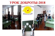 На основании Указаний МО и НРТ сегодня в школе прошёл Урок Доброты. Мероприятие было организовано и проведено с учащимися 7 класса. В течение Урока учитель Гизатуллина Г.Р. ознакомила обучающихся с потребностями человечества в добрых поступках, призвала творить добро. Учащиеся приняли активное участие в обсуждении вопросов : что такое "доброта"; как можно спасти этот мир; кто такой "волонтёр"?. Итогом Урока стал совместный проект "Твори добро!". 24.12.2018