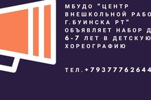Дорогие родители! МБУДО "Центр внешкольной работы г.Буинска РТ" объявляет набор детей 6-7 лет в детскую хореографию. Тел.+79377762644 15.10.2018