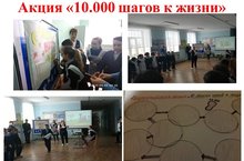 6 апреля в рамках Всемирного Дня здоровья в школе стартовала Всероссийская акция «10 тысяч шагов к жизни». На общешкольной линейке были озвучены условия её проведения. Каждый классный коллектив получил Маршрутный лист с заданием. Работа с подсчётом каждого шага продолжилась на улицах населённых пунктов Н.Наратбаш, Бикмуразово. Акция продлится в течение двух дней. По итогам мероприятия определятся «Самый активный пешеход» и «Самый активный класс» с учётом набранных ими голосов по пропаганде ЗОЖ. Акция набирает новых и новых участников! 06.04.2019