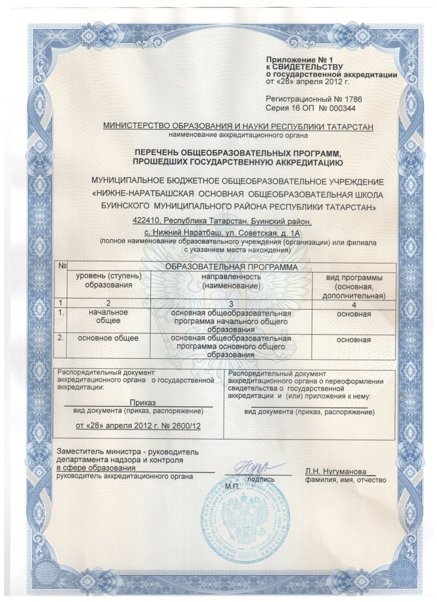 муниципальное бюджетное общеобразовательное учреждение «Нижне-Наратбашская основная общеобразовательная школа Буинского муниципального района Республики Татарстан»