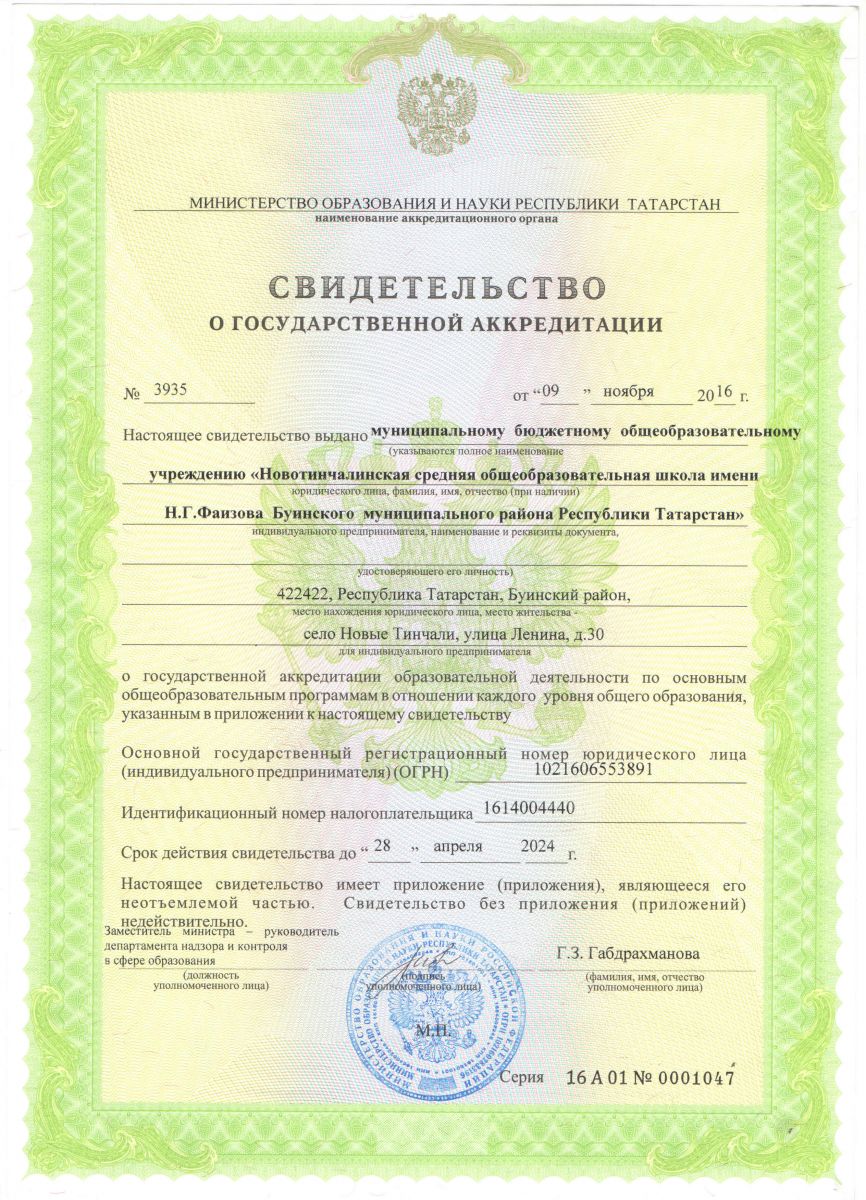 Муниципальное бюджетное общеобразовательное учреждение «Новотинчалинская основная общеобразовательная школа имени Н.Г.Фаизова Буинского муниципального района Республики Татарстан»/Муниципаль бюджет гомуми белем бирү учреждениесе “Татарстан Республикасы Буа муниципаль районы Н.Г.Фәизов исемендәге Яңа Тинчәле тэп белем мәктәбе”