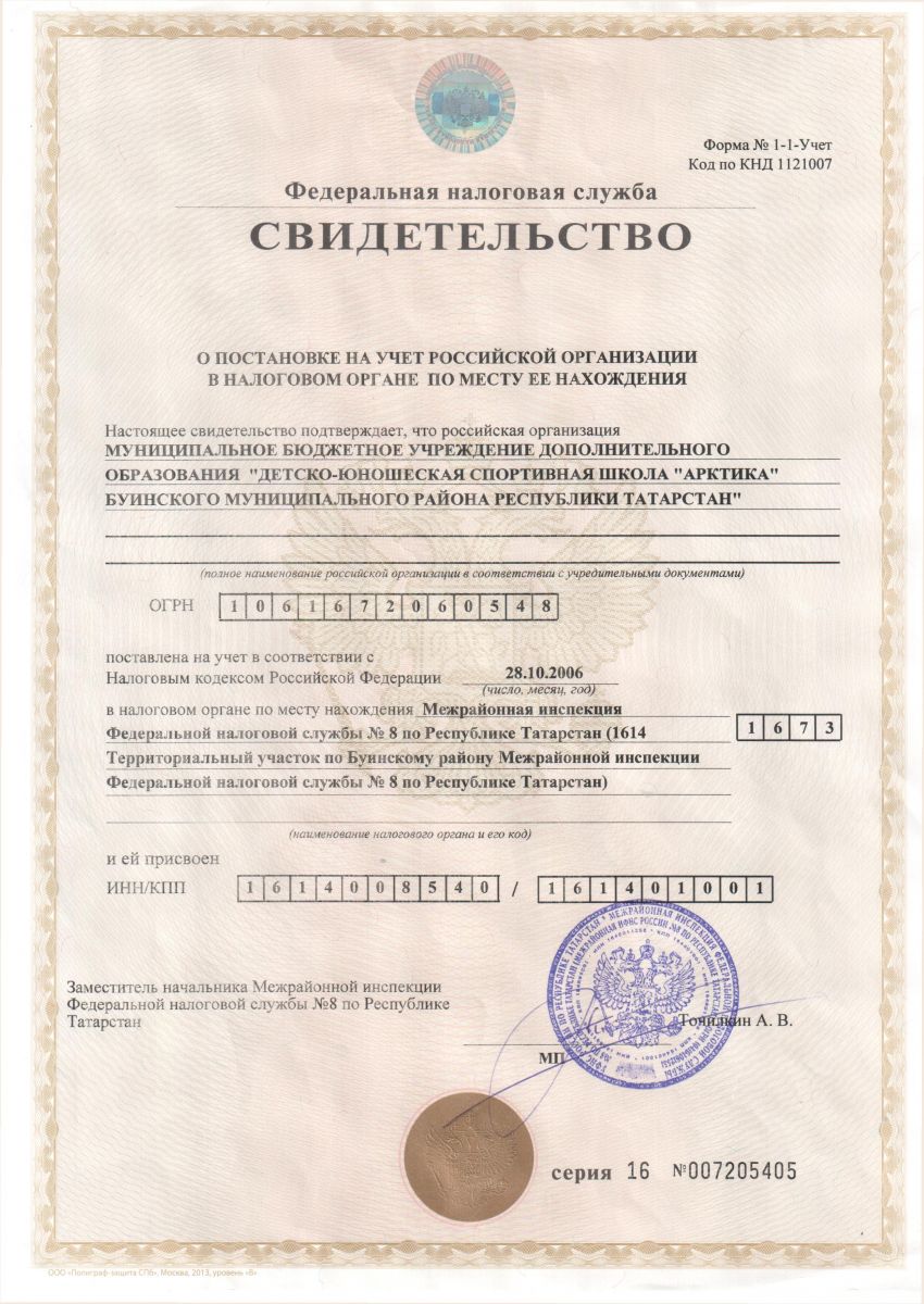 Свидетельство о постановке на учет Российской федерации в налоговом органе