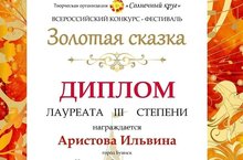 Всероссийский конкурс- фестиваль "Золотая сказка" 02.11.2020