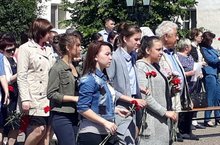 Участие в митинге, посвященном 77-й годовщине вероломного нападения фашистов на Советский Союз. Студенты техникума возложили цветы к подножию мемориального комплекса. 22.06.2018