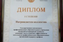 5 июля в г. Кукмор прошло Республиканское августовское совещание работников образования и науки: "Доступное и качественное профессиональное образование- основа конкурентоспособности экономики РТ." Коллектив Буинского ветеринарного техникума занял 1 место в рейтинге эффективности деятельности среди профессиональных образовательных организаций аграрного профиля! Поздравляем!