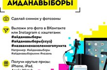 2) Для участия в Фотомарафоне необходимо иметь открытый аккаунт и опубликовать фото в социальных сетях Инстаграм или Вконтакте с двумя хэштегами: #айданавыборы и хэштегом с указанием своего города или административного центра (например: #Казань #Арск #Зеленодольск#Сарманово и т.п.). Дополнительный хэштег для ВУЗов (например: #айданавыборыКАИ, #айданавыборыКХТИ). 3) Все выложенные фотографии, прошедшие модерацию на предмет соответствия условиям и задачам конкурса, будут опубликованы на сайте Айданавыборы.рф. Далее в течение нескольких дней – с 20 до 25 марта состоится голосование за лучшие фото- и видео-работы участников.