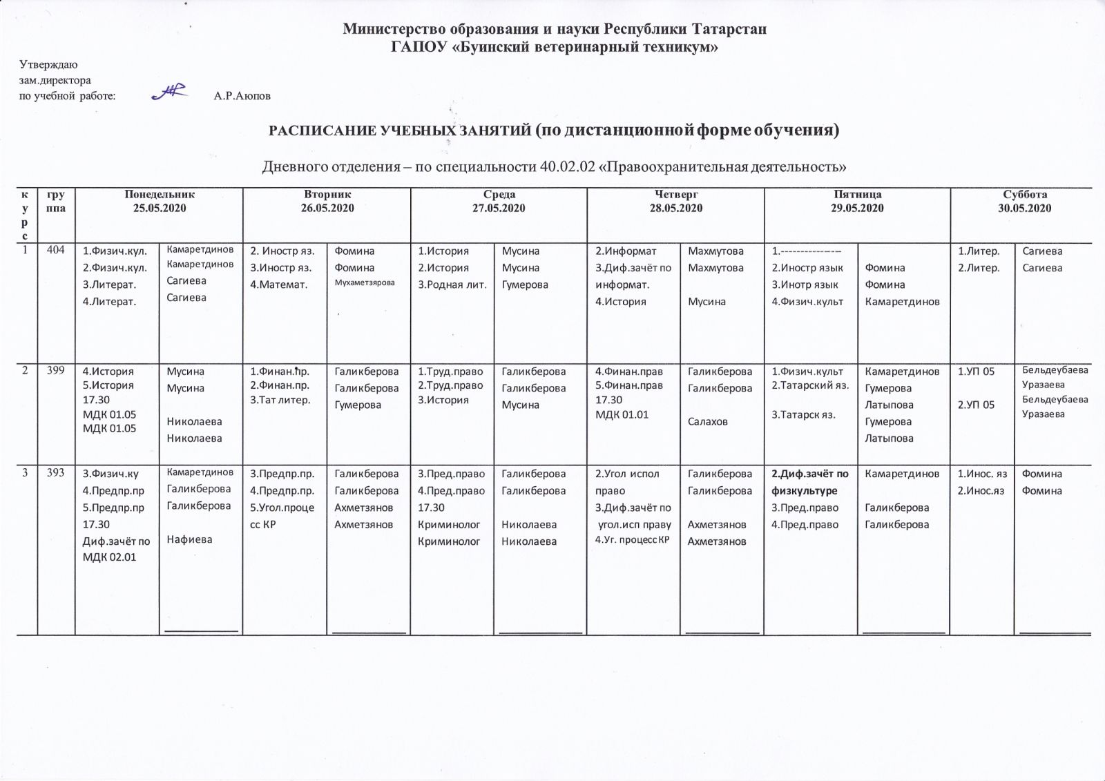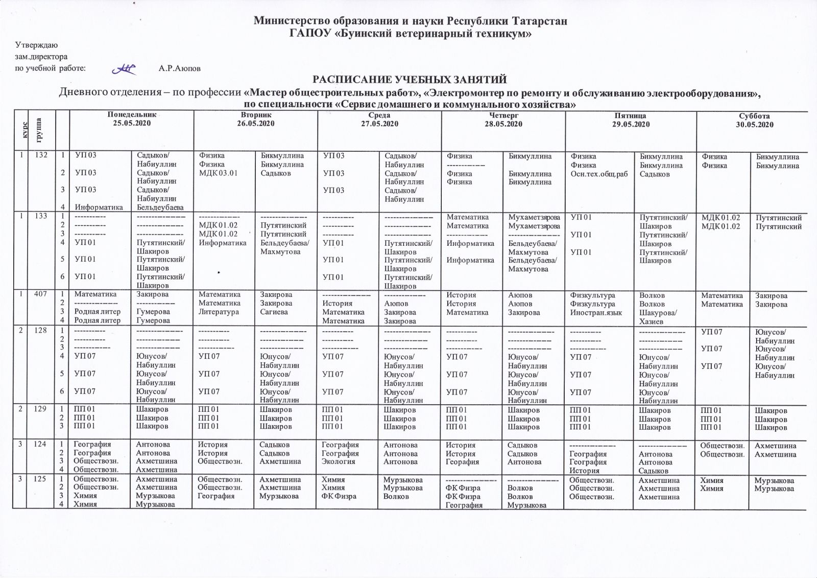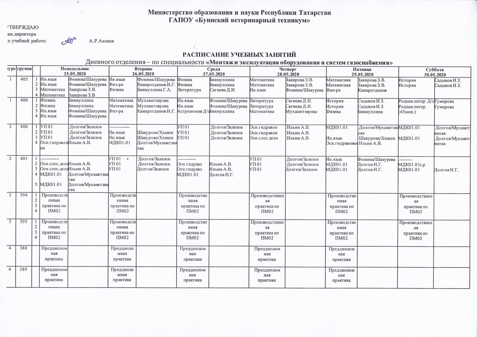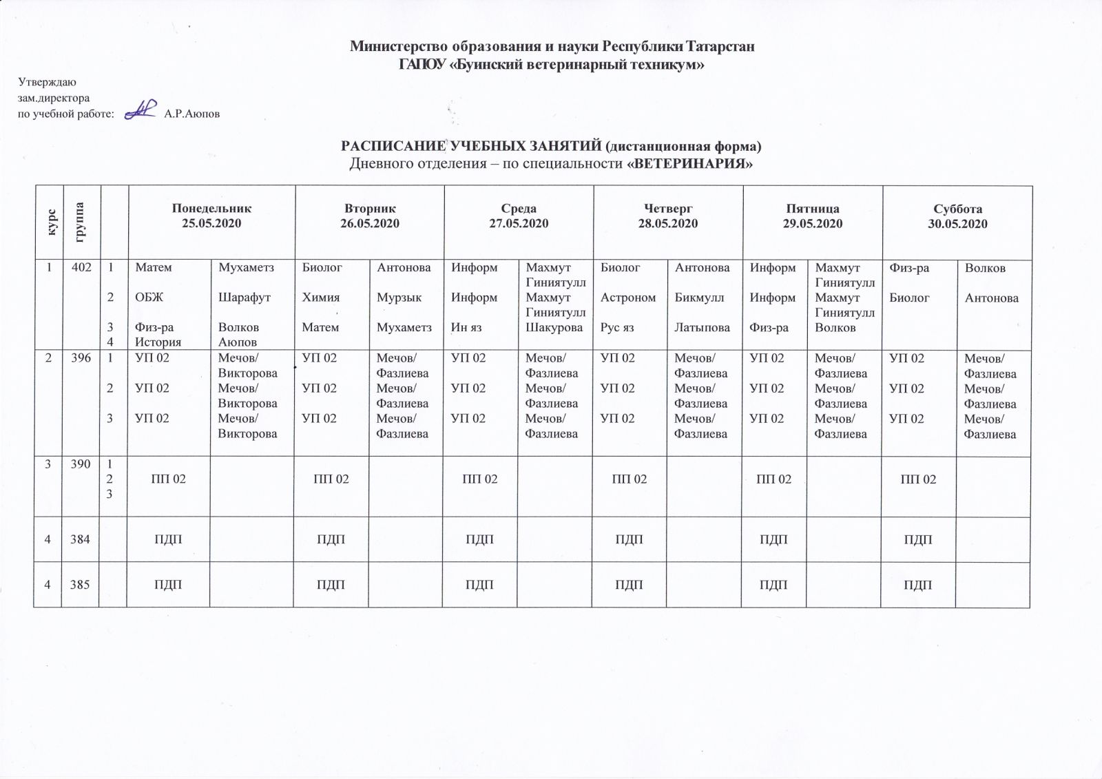 расписание занятий отделения "Ветеринария" с 25.05.2020 по 30.05.2020