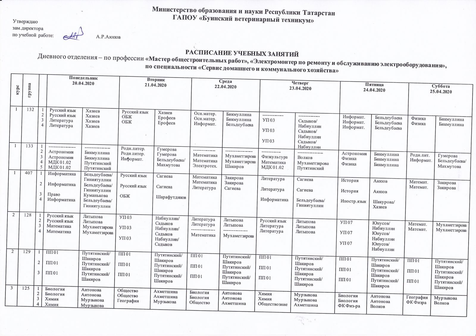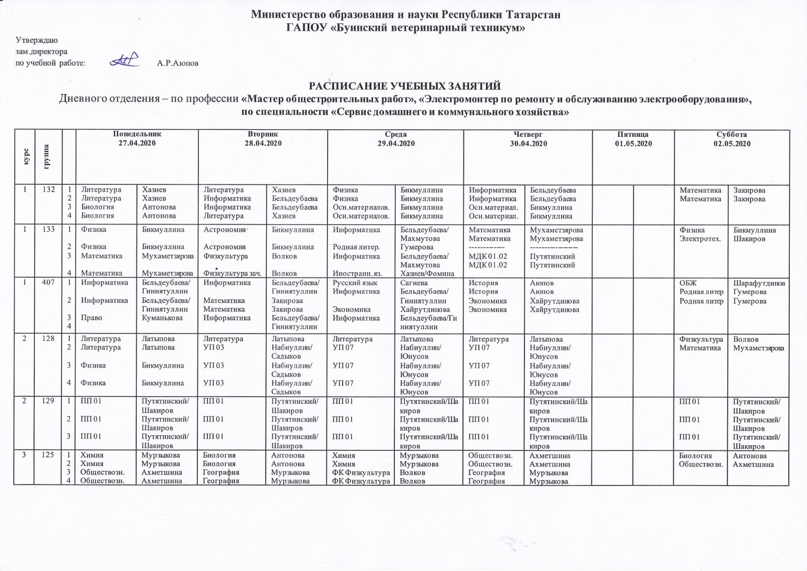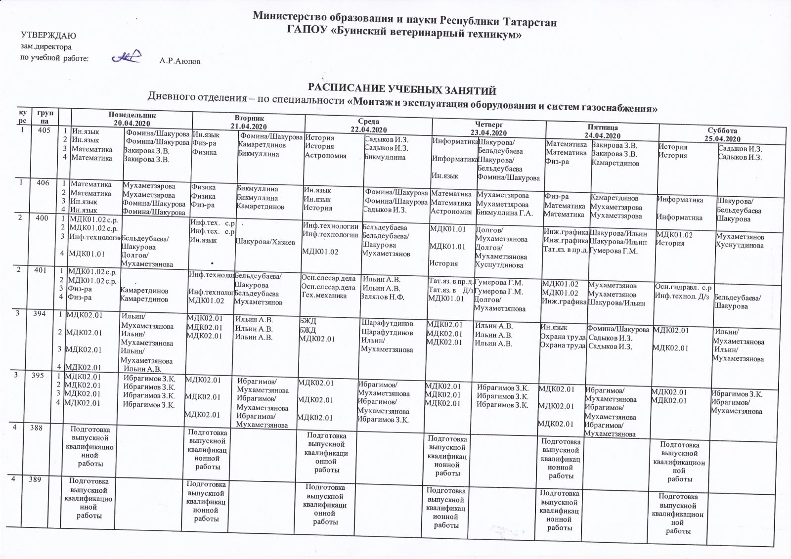 расписание занятий отделения "Ветеринария" с 27.04.2020 по 02.05.2020