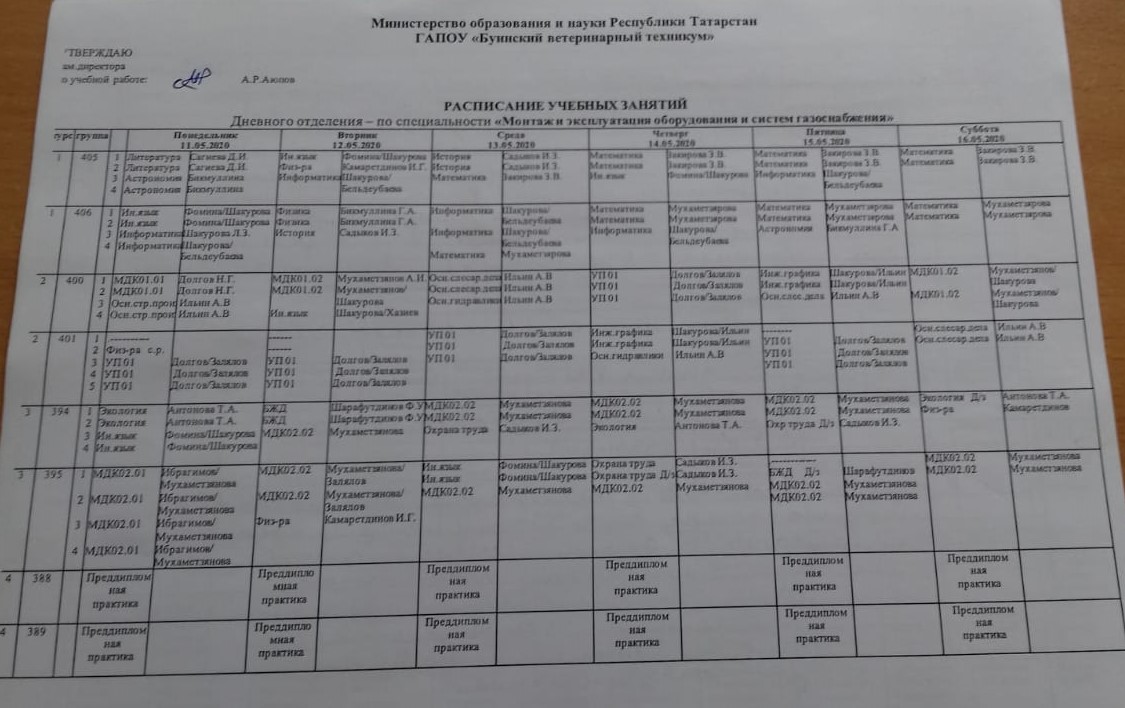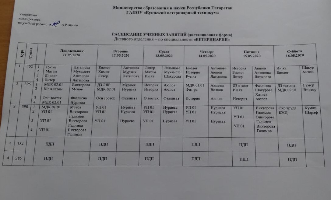 расписание занятий отделения "Ветеринария" с 11.05.2020 по 16.05.2020