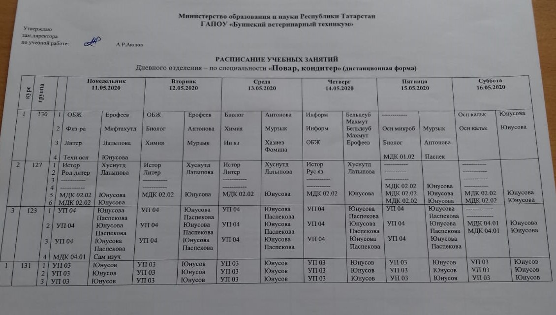 расписание занятий отделения "Повар, кондитер" с 11.05.2020 по 16.05.2020