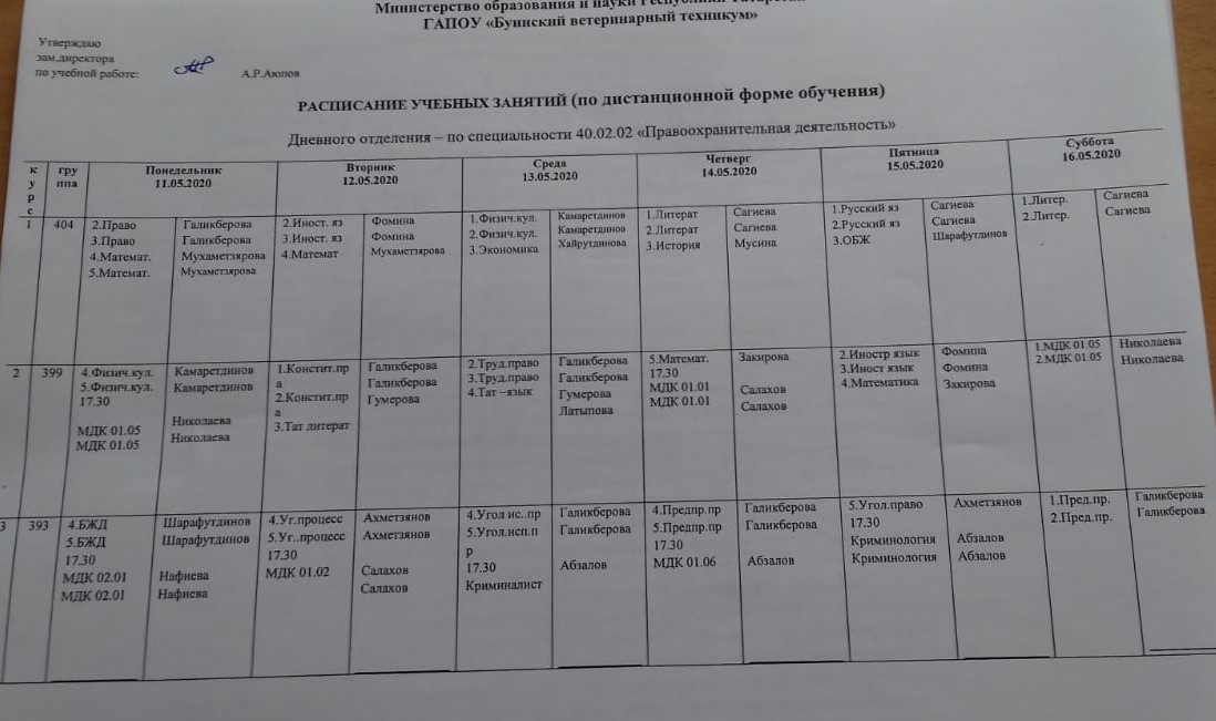 расписание занятий отделения "Правоохранительная деятельность" с 11.05.2020 по 16.05.2020