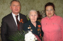 Поздравление Гусаровой Валентины Григорьевны - участницы ВОВ, Кавалера медали "За Отвагу", ордена Славы III степени, Ветерана труда БМУ (1977-1982 работала главным бухгалтером). 09.05.2015