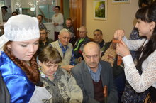 Волонтеры 213 группы участвовали в благотворительном концерте в Доме-интернате для престарелых и инвалидов и вручили ветеранам Георгиевские ленточки 22.04.2015