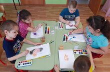закрепляли умение украшать предмет, использовать в процессе рисования краски разных цветов. -