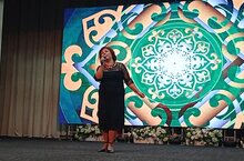 Музыкальный руководитель МБДОУ "Ак каен" поздравила с Днем докольного работника и выступила с песней "Балаларым"