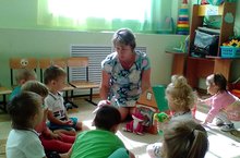 Сегодня в саду прошел "День природы".С утра был небольшой дождь, и дети это отметили. Потом участвовали в игре "Береги природу". Из своего опыта дети рассказали об отдыхе в лесу. Закрепили правила поведения в природе по экологическим знакам.На прогулке малыши с удовольствием поиграли в "Ловишки".