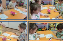 Сегодня в первой младшей группе прошло занятие по художественно - эстетическому развитию (лепка). Тема занятия: "Тарелка для котят". Цель: учить детей создавать рельефные изображения из пластилина модульным способом - отщипывать кусочки, прикладывать к фону и прикреплять пальчиками; вызывать интерес к созданию красивой тарелки из кусочков пластилина разного цвета; укреплять пальчики и кисть руки.