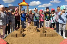 Сегодня воспитанники старшей группы "Рябинушки" построили замок из песка. Ребята с удовольствием лепили из мокрого песка стены замка, работали дружно и весело. Постройка получилась большая и очень красивая. Дети были довольны результатами своей работы. -