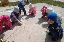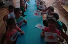 Все дети очень любят рисовать. Особенно им интересно применение нетрадиционных приемов рисования. Ребята младшей группы "Пчёлки" сегодня изобразили аквариум с рыбками. А рыбок малыши печатали с помощью своих ладошек.