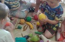 Дети 2 группы раннего возраста "собирали " урожай овощей и фруктов. Малыши учились правильно их называть, отличать овощи и фрукты.