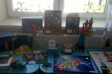Выставка творческих работ родителей и детей ко Дню космонавтики.