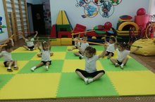 В средней группе "Светлячки"прошел кружок"Крепышок". Дети знакомились с разнообразными видами ходьбы, закрепили умение сохранять равновесие при ходьбе по ограниченной площади, совершенствовали навыки ползания.В конце занятия ребята поиграли в подвижные игры.