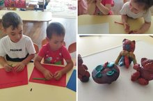 Сегодня в рамках тематической недели "Сказка в гости к нам пришла" в старшей и подготовительной к школе группах лепили главных персонажей русской народной сказки "Теремок". Лепка – самый осязаемый вид художественного творчества. Ребёнок не только видит то, что создал, но и трогает, берёт в руки и по мере необходимости изменяет.